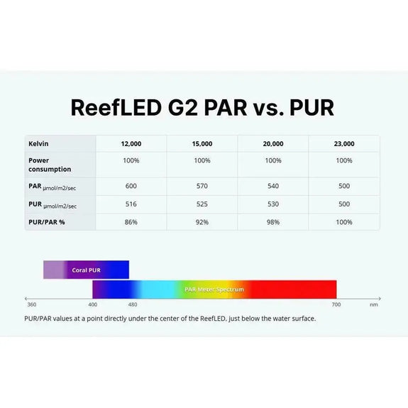 - Richer Blue Spectrum & Stronger White Light – Tunable from 8,000K Reef-White to 23,000K REEF-SPEC Blue, maintaining full power from 10,000K and up.