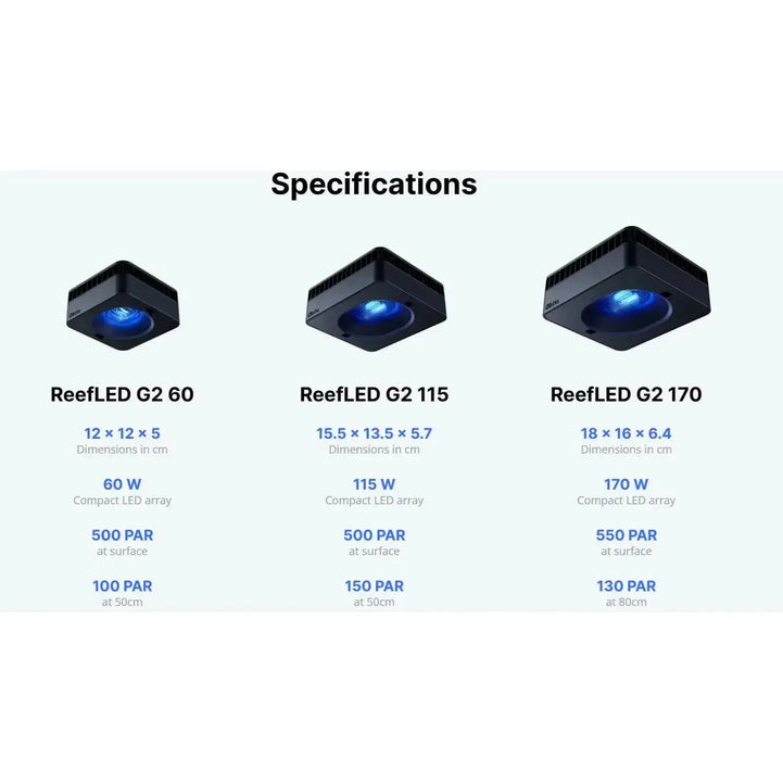 Backed by 35 years of coral research, the ReefLED G2 is designed to optimize coral growth and coloration with its REEF-SPEC light spectrum, ensuring both you and your corals get the best lighting experience possible.