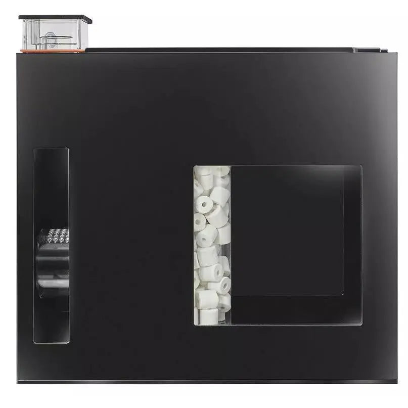 L'eau prélevée de l'aquarium passe d'abord par l'écumeur de protéines, qui élimine les molécules organiques telles que les protéines trouvées dans les aliments non digérés et les déchets de poissons. Ensuite, l'eau passe par le média de filtration biologique inclus, qui abrite des bactéries bénéfiques. Avant d'être retournée à l'aquarium, l'eau passe par une troisième chambre, qui peut accueillir le média de filtration de votre choix pour affiner davantage l'eau.
