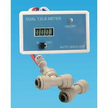 Mesurez l'eau du robinet entrant par rapport à l'eau purifiée sortant de votre système à tout moment. Utilisez le moniteur pour déterminer quand les filtres doivent être changés. Installez le compteur pour vos clients afin qu'ils sachent toujours comment leur système fonctionne.