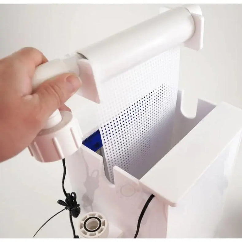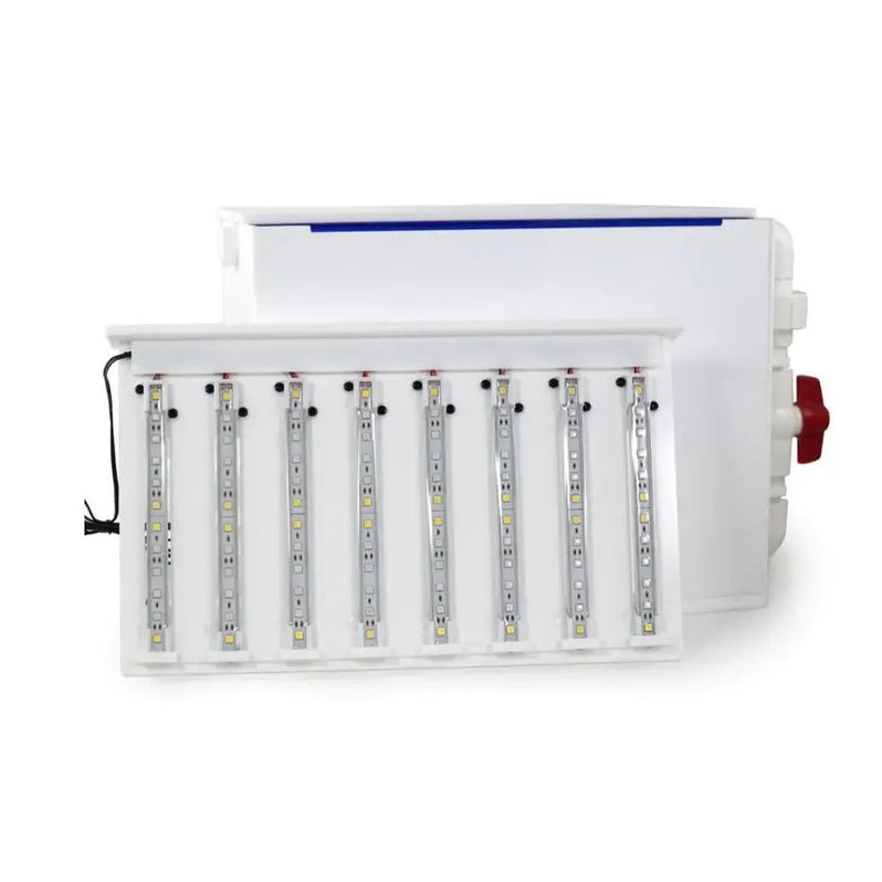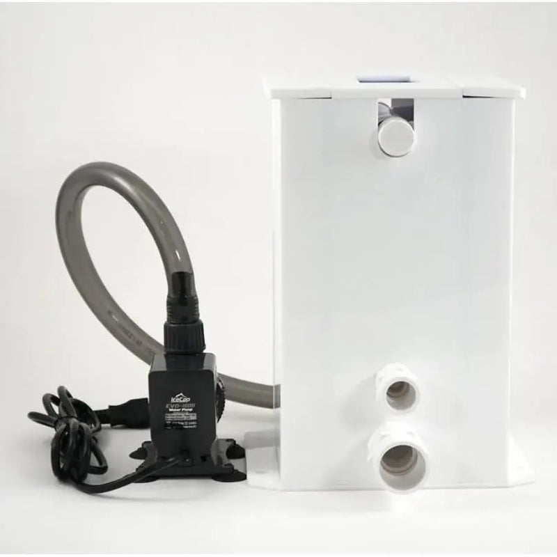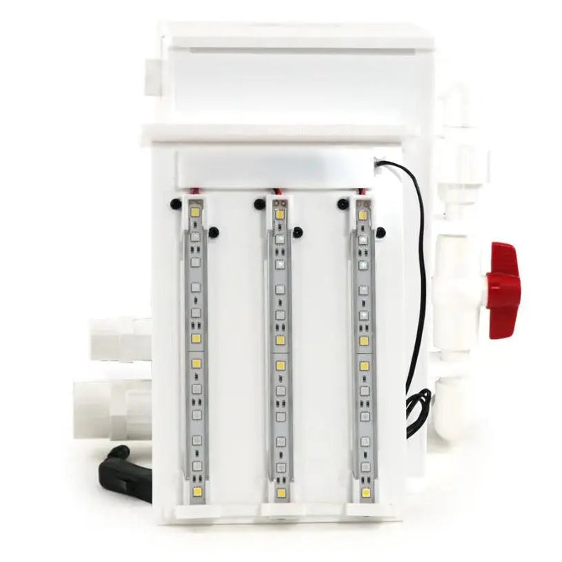 Les Épurateurs de Gazon Externes IceCap sont conçus pour être placés à l'extérieur et au-dessus de la cuve de décantation afin que l'eau qui traverse l'unité puisse s'écouler directement dans la cuve. L'eau est introduite dans l'épurateur par la pompe à eau IceCap EVO incluse. L'eau entrant dans l'unité est déversée sur un écran illuminé de chaque côté par un champ puissant de lumières LED. À mesure que les algues commencent à pousser sur l'écran, elles "nettoient" l'eau de l'aquarium des nutriments en excès, ce qui se traduit par moins d'algues dans l'aquarium principal. Une fois l'écran couvert d'algues, il peut être "récolté" en enlevant une partie importante, éliminant ainsi les contaminants du système.