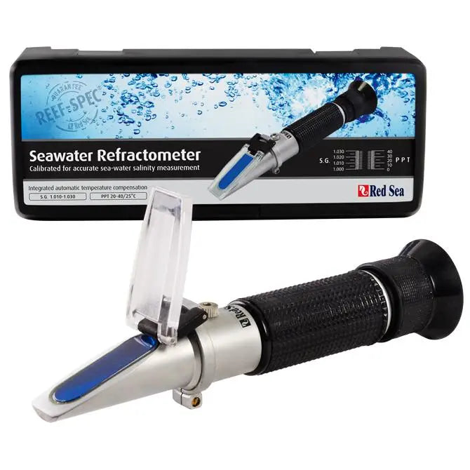 Main features of Red Sea’s Seawater Refractometer include: •Directly reads the absolute salinity of seawater at 25°C/77°F ( No need for seawater or temperature compensation factors)